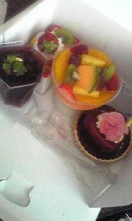 母の日に、お坊さんがたーちゃんと私に買ってきてくれたケーキたち。お花可愛ー。