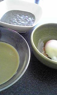 昼食は中華風茶碗蒸し・野菜あんかけ、枝豆のポタージュ、杏仁豆腐でした。